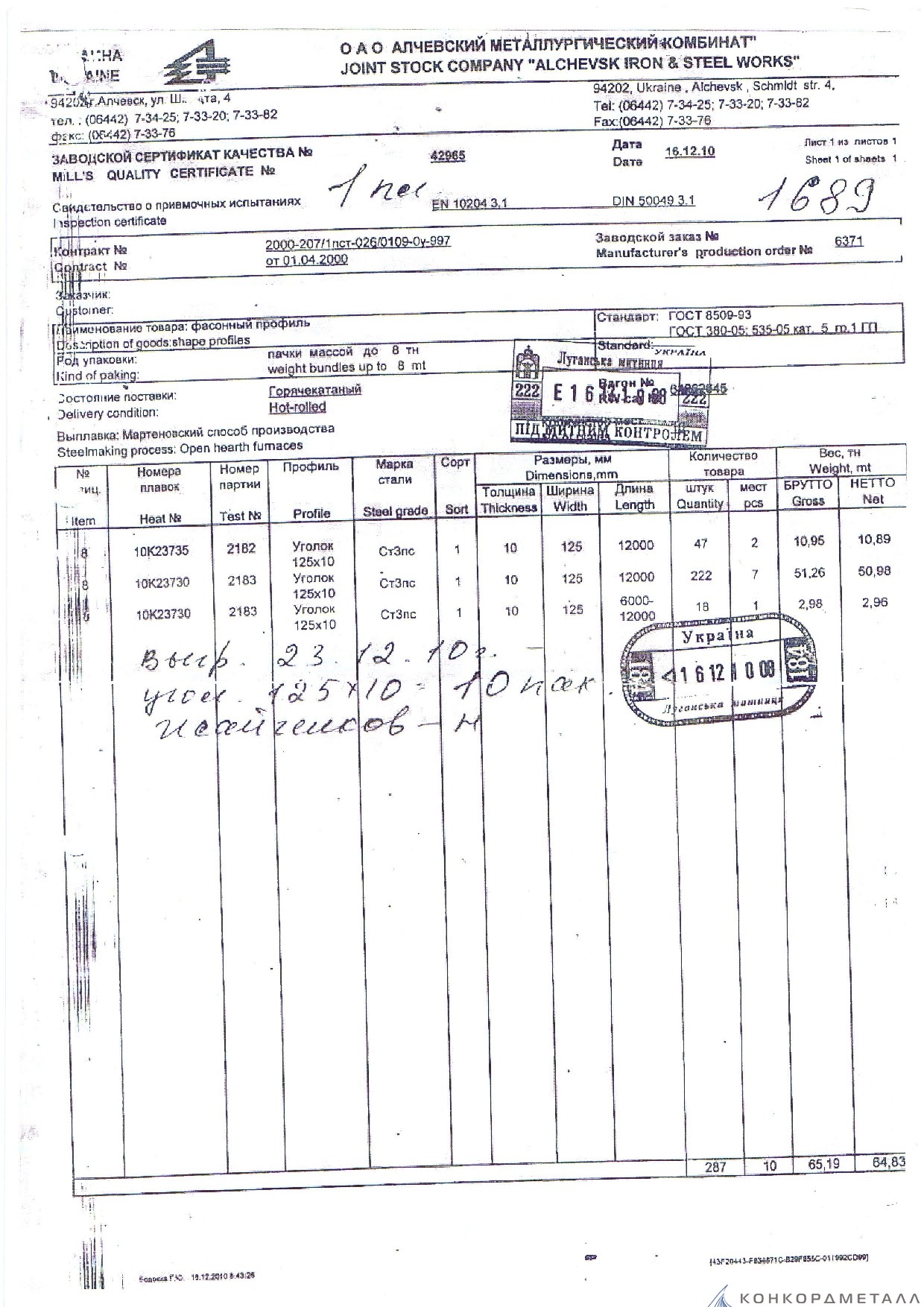 С каждой товарной позицией мы предоставляем все сертификаты и паспорта качества, а также товарно-транспортную накладную.