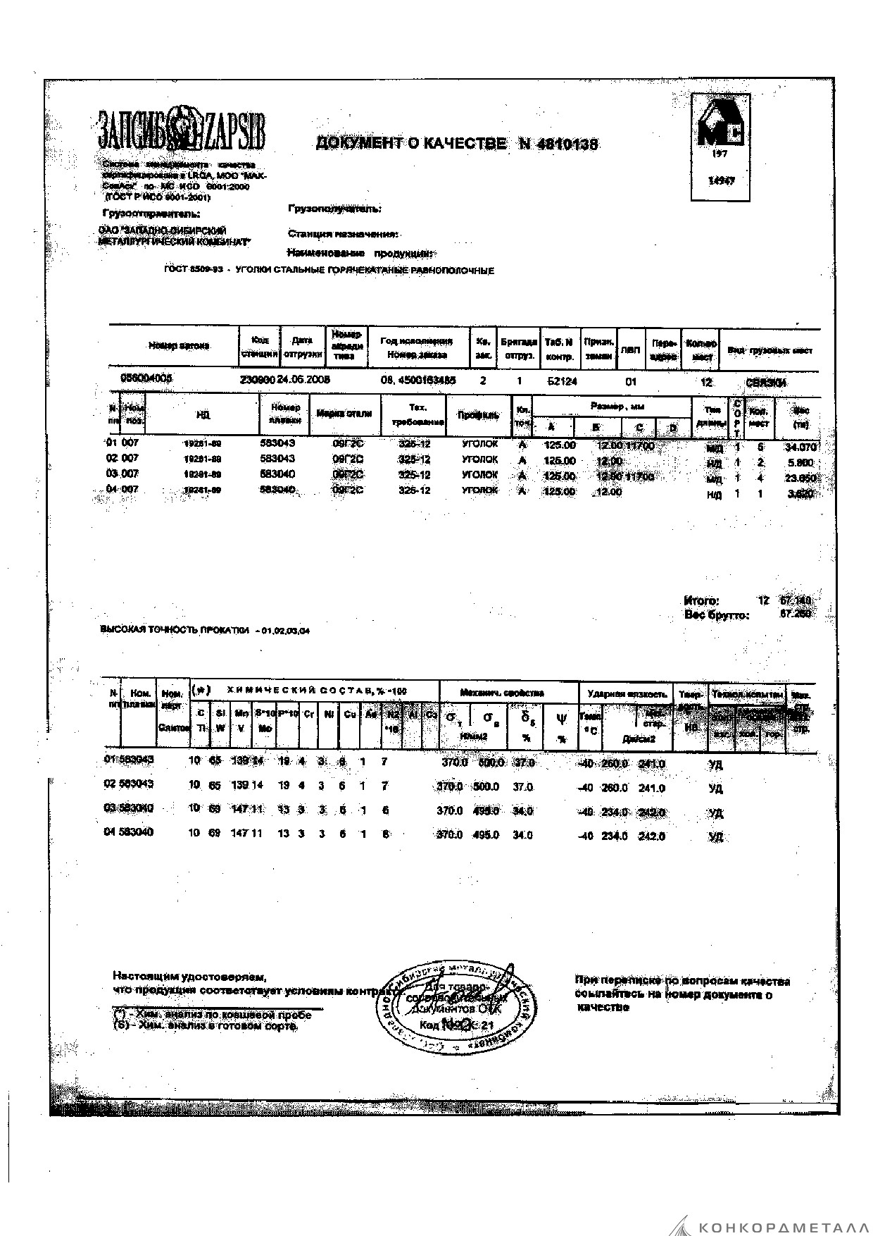 С каждой товарной позицией мы предоставляем все сертификаты и паспорта качества, а также товарно-транспортную накладную.
